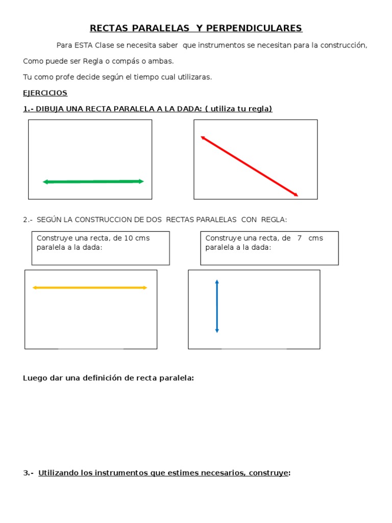 Rectas paralelas y perpendiculares en el plano cartesiano. Sus pendientes son recíprocas (o inverso multiplicativo) y de signo contrario. Para poder comprender y resolver los problemas, el alumno necesitará tener las siguientes destrezas Según los vectores directores: Dos rectas son paralelas si el vector director de una es el vector director de la segunda, multiplicado por un número. Si una recta interseca a otra, entonces también interseca a todas sus paralelas. Rectas: dos coplanarias son perpendiculares cuando al cortarse dividen al plano en cuatro regiones iguales. Explicamos qué son las rectas paralelas y las perpendiculares y cómo identificarlas.