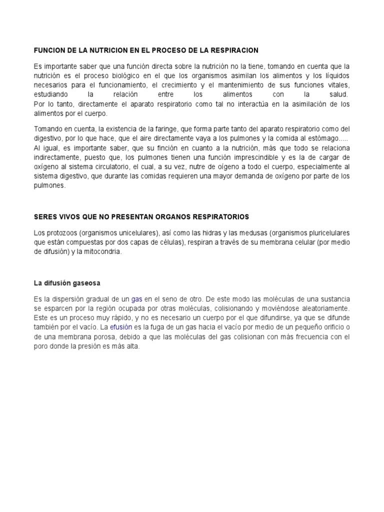 Funcion de La Nutricion en El Proceso de La Respiracion ...
