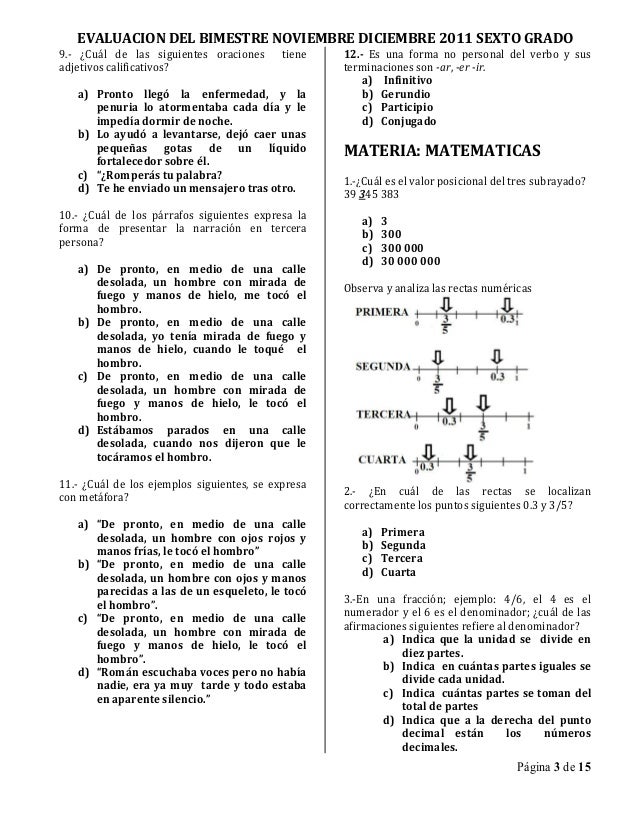 Examen bimestral sexto grado BIMESTRE II NOVIEMBRE-DICIEMBRE