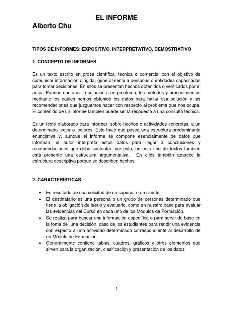 Tipos de Informes, Expositivo, Interpretativo y Demostrativo