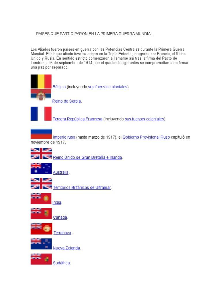 Los Paises Que Participaron en La Primera Guerra Mundial ...