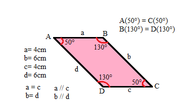 Sus lados opuestos deben tener la misma longitud. Sus lados son iguales dos a dos y sus lados opuestos son también iguales. En geometría euclidiana, un paralelogramo es un cuadrilátero cuyos dos pares de lados opuestos son iguales entre sí.